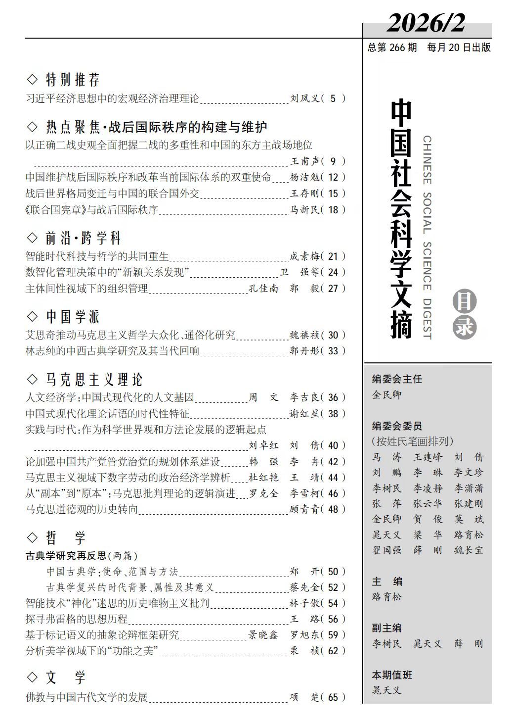《中国社会科学文摘》是中国社会科学院主管、中国社会科学杂志社主办的大型学术文摘期刊,是国内学术界公认的权威学术期刊之一。该刊致力于推介中国人文社会科学及相关领域重要成果。