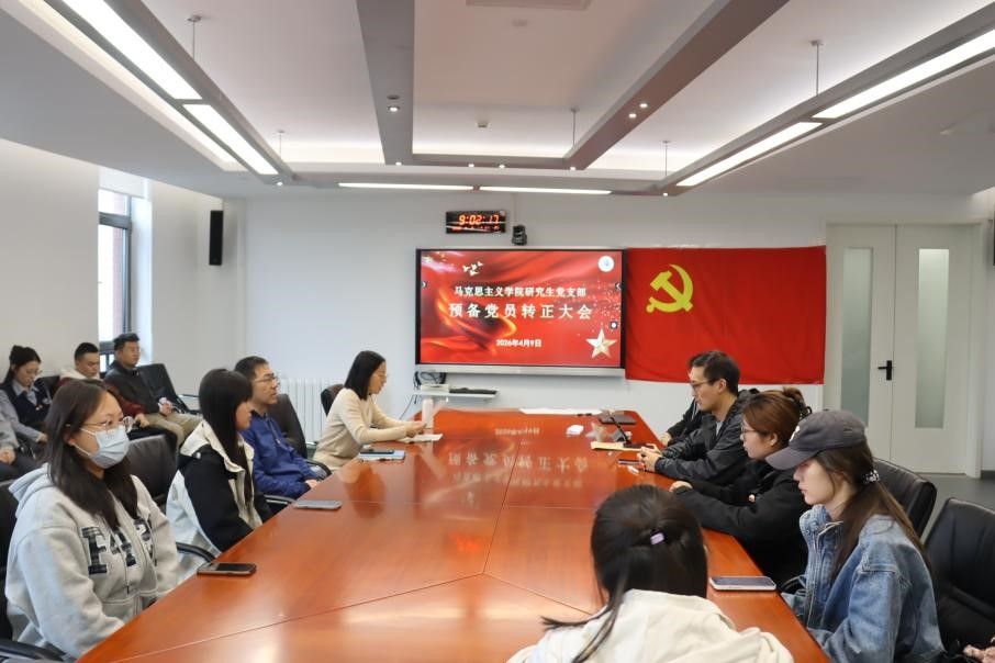 为加强党的组织建设,马克思主义学院研究生党支部于2026年4月9日召开预备党员转正大会。马克思主义学院研究生党支部全体党员参加,马克思主义学院党总支组织员王浩出席大会,本次会议由研究生党支部书记刘珊珊主持。